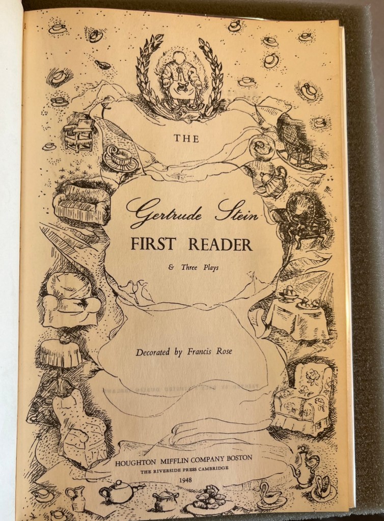 Francis Rose never reached the level of notoriety as many of Stein’s more famous friends. He is most frequently identified through his relationship with the author, although his artistic achievements go beyond the time they spent together. This relative lack of fame makes finding information about his artistic practices and publications as an illustrator difficult; although he published a memoir of his life in 1961, titled Saying Life, the veracity of the stories is questionable (the book has been nicknamed Saying Lies).
